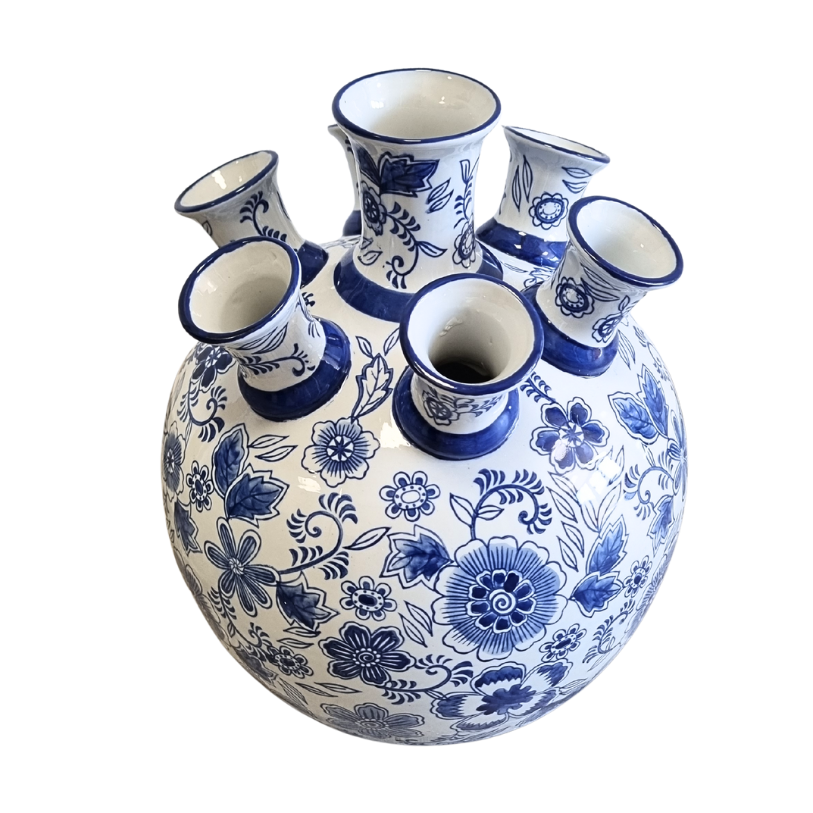Einzigartige Tulpenvase mit Delfter blauen Blumen