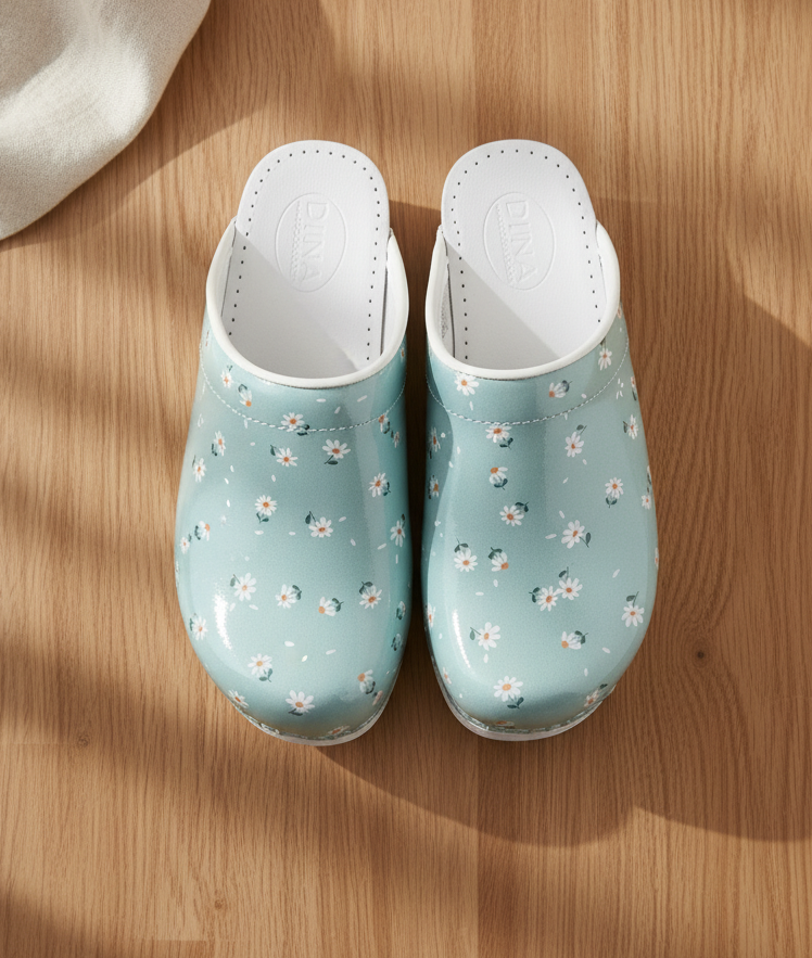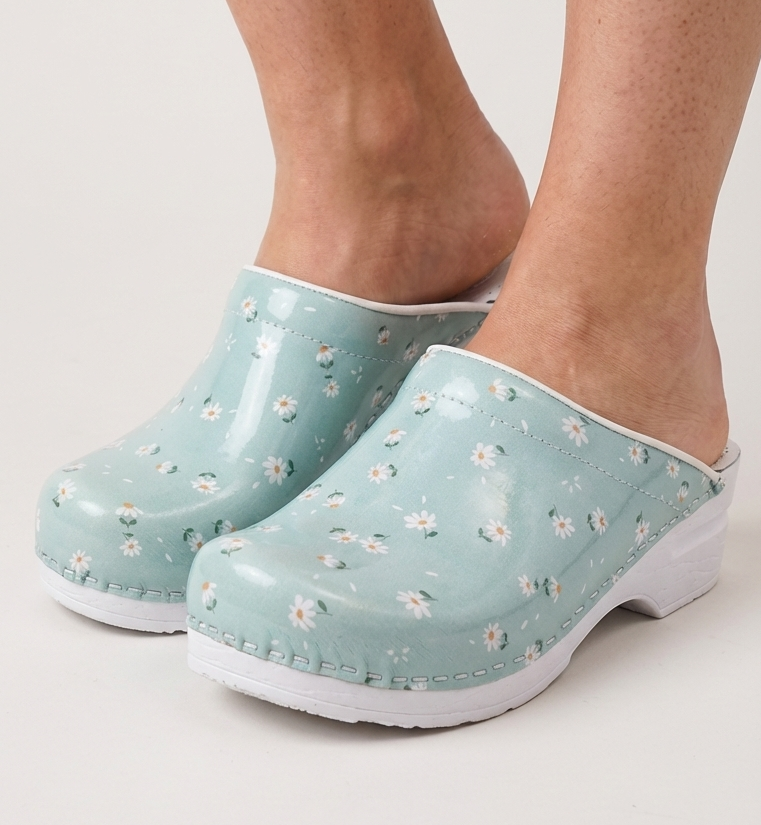 Diese medizinischen Clogs Dina mit Gänseblümchen-Print vereinen Stil und Funktionalität für medizinisches Fachpersonal und andere Arbeitsumgebungen. Hergestellt aus strapazierfähigen Materialien und mit ergonomischem Design bieten sie optimalen Halt und Komfort an langen Arbeitstagen. Der auffällige Print verleiht Ihrem Arbeitsoutfit eine verspielte und einzigartige Note, ohne Kompromisse bei Qualität und Sicherheit einzugehen.