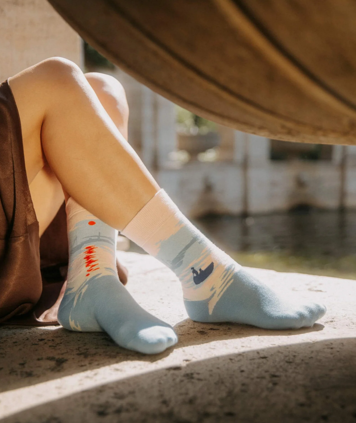Discover the serene beauty of Claude Monet with our specially curated Monet gift set. This set brings together three of his most beloved masterpieces – Water Lilies, Impression / Sunrise, and The Poppy Field near Argenteuil. Each sock captures Monet’s interplay of light, color, and atmosphere, translating his impressionist finesse into a wearable form, perfect for admirers of timeless art.
