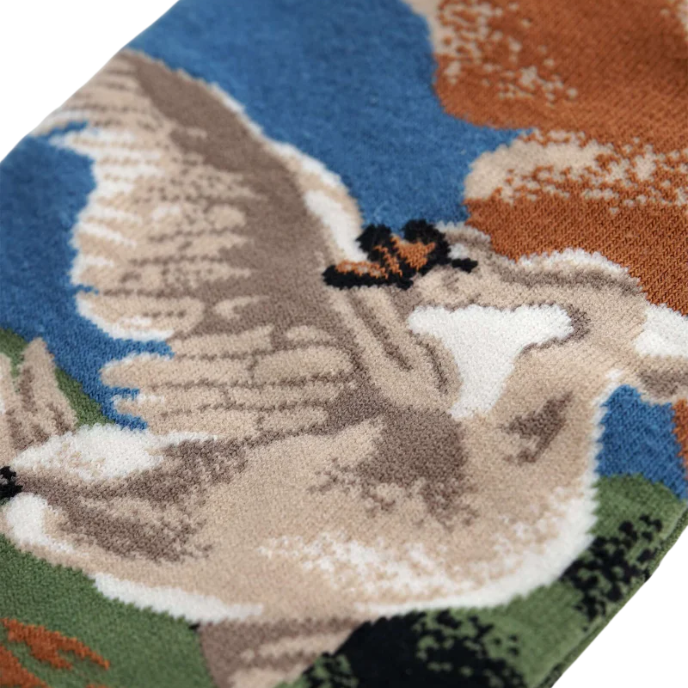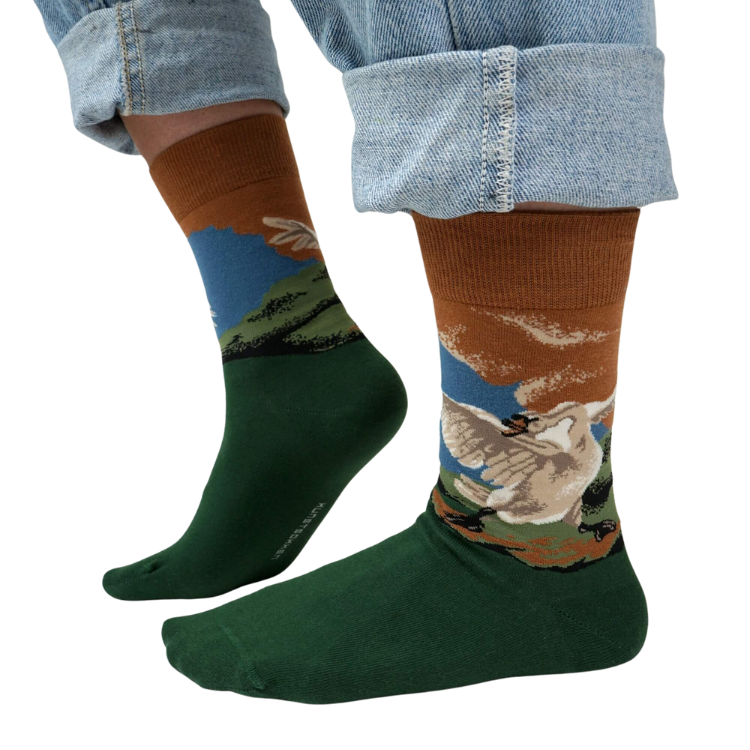 Jan Asselijn's "The Threatened Swan" (1650) depicts a swan battling to protect its nest, a symbol of courage and elegance. These socks bring this powerful image to life on your feet, with every step embodying the timeless battle between beauty and protection.