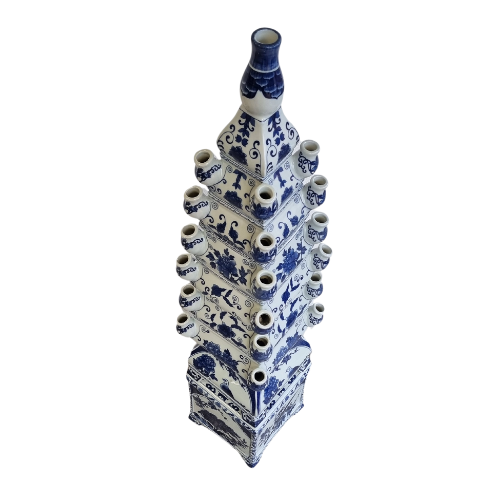 Delftsblauwe Piramide Vaas voor tulpen - 116cm hoog