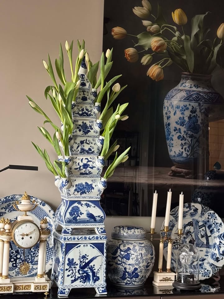 Delftsblauwe Piramide Vaas voor tulpen - 116cm hoog Lees meer