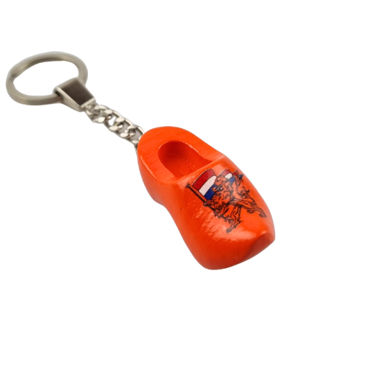 Klompsleutelhanger met traditionele print. De echte Hollandse oranje klomp sleutelhanger zoals we die kennen.