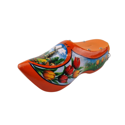 Deze klomp spaarpot is afgewerkt in traditioneel molendecor.