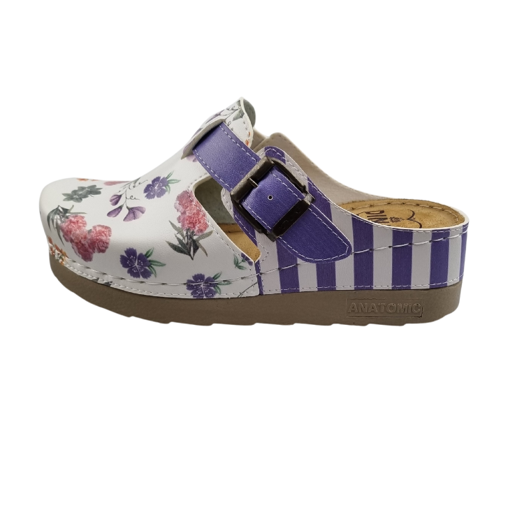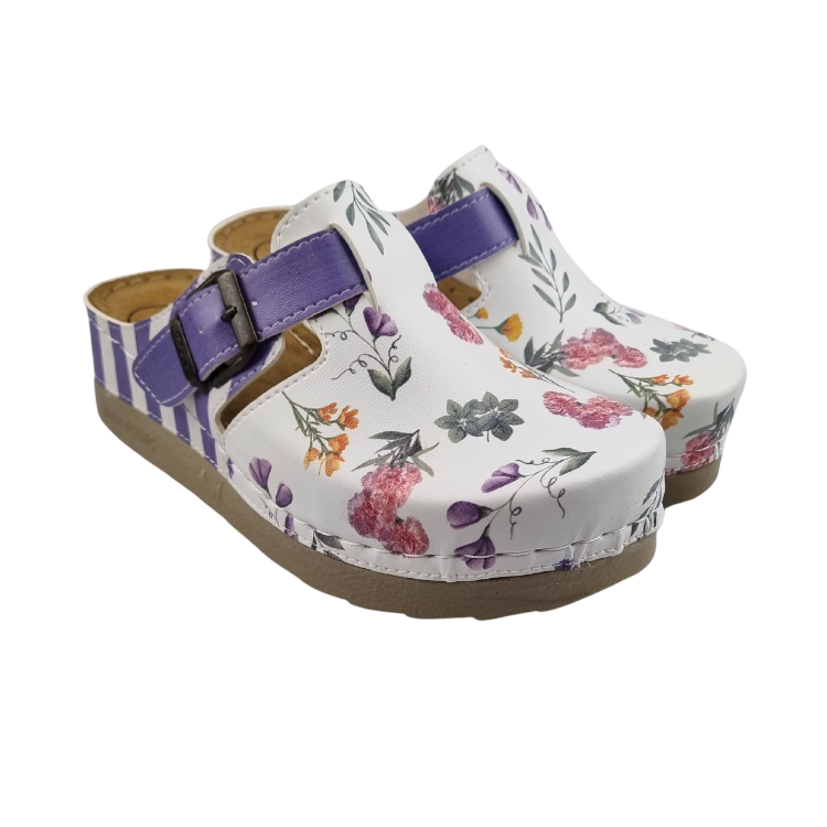 Stripes and flowers - klompen met kunststof zool en medisch voetbed - Dina clogs
