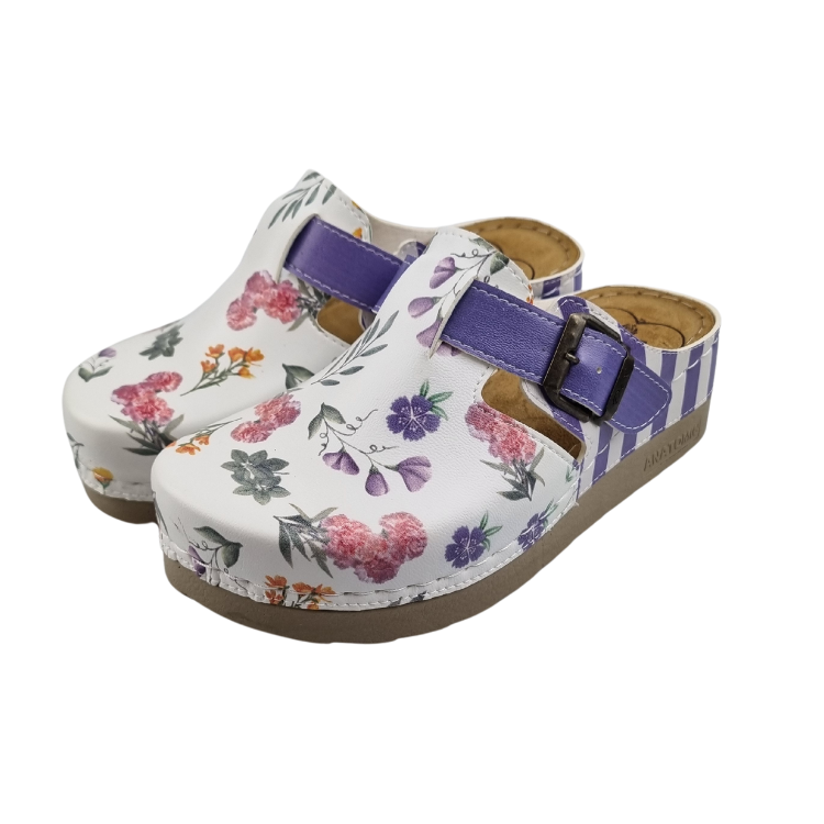 Deze Dina klompen met een charmante stripes and flowers print combineren vrolijk design met ultiem comfort. De duurzame kunststof zool biedt optimale grip en slijtvastheid, terwijl het speciaal ontworpen medisch voetbed zorgt voor perfecte ondersteuning tijdens lange werkdagen. Ideaal voor zorgprofessionals die stijl en functionaliteit willen combineren.